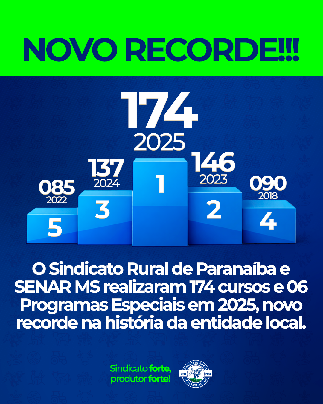 O Sindicato Rural de Paranaíba e SENAR MS realizaram 174 cursos e 06 Programas Especiais em 2025, novo recorde na história da entidade local.
